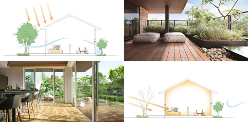 涼温房は、風や太陽・緑などの自然の恵みを積極的に家づくりに活かそうとする考え方です。