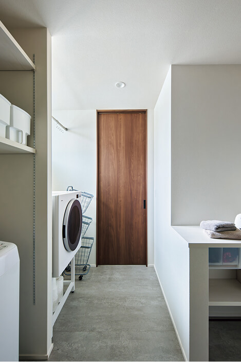 トイレ、洗面、浴室をまとめて配置したランドリールーム。南側に位置しているため、洗う・干す・しまうまで効率的に行えます。