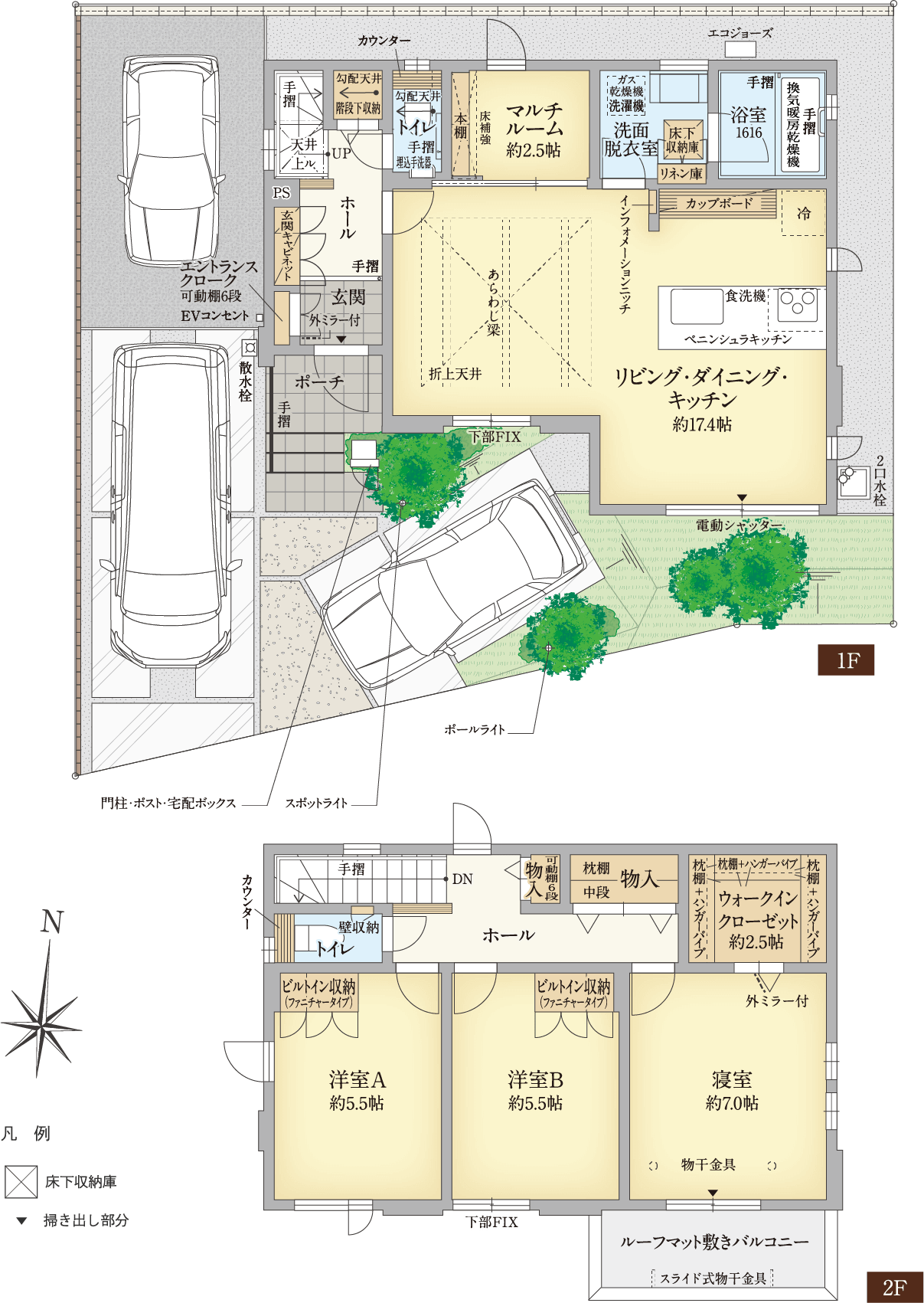来客やお子さまが将来マイカーを所有された時に備えて、最大3台駐車可能なプランをご用意しました。