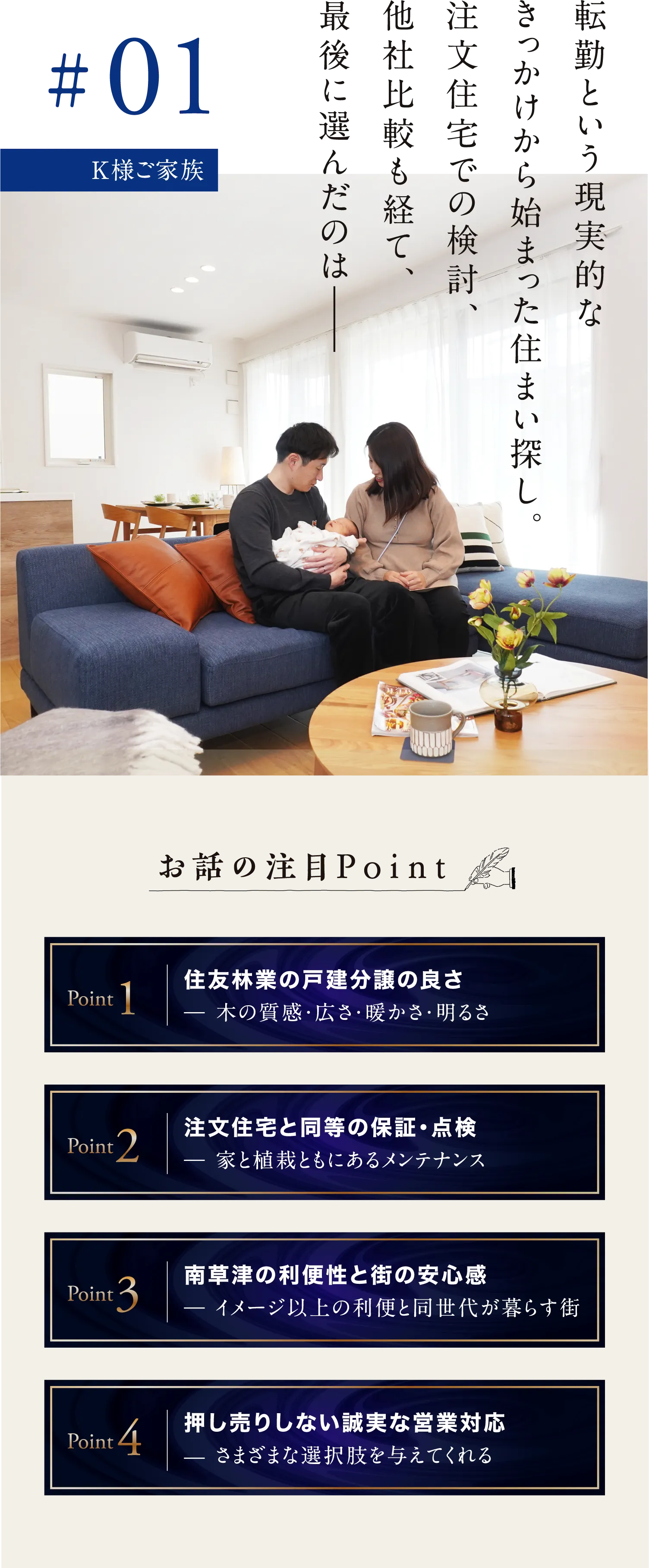 最終的に住友林業さんを選んだ決め手は、いくつかの理由があります。