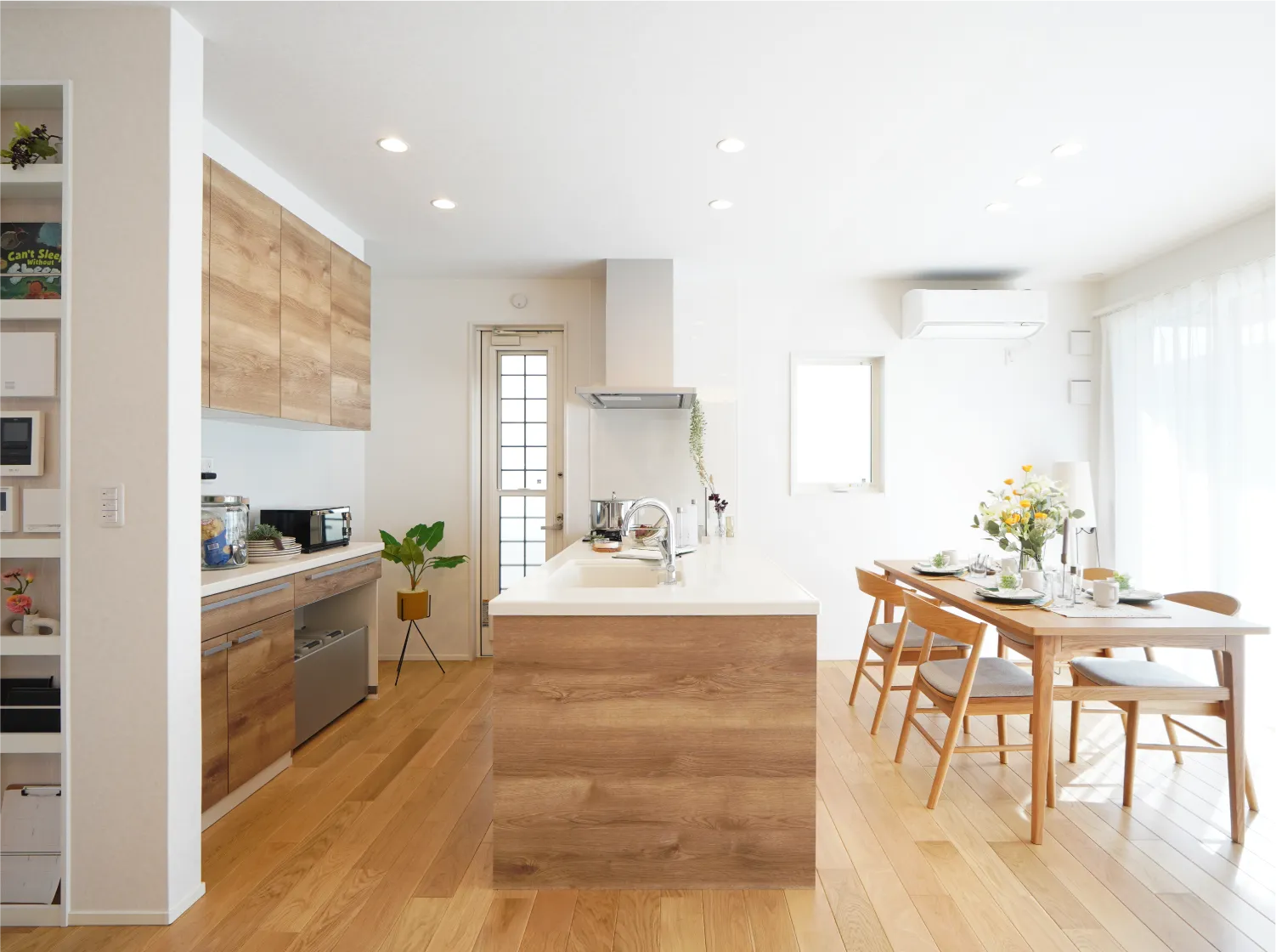 まず図面で見ていた印象よりも実際の建物は“数字以上に広く”感じました。数字で想像するよりも体感が広い。キッチンの天井が高いからなのか、抜け感があって、思ったより広いと感じます。