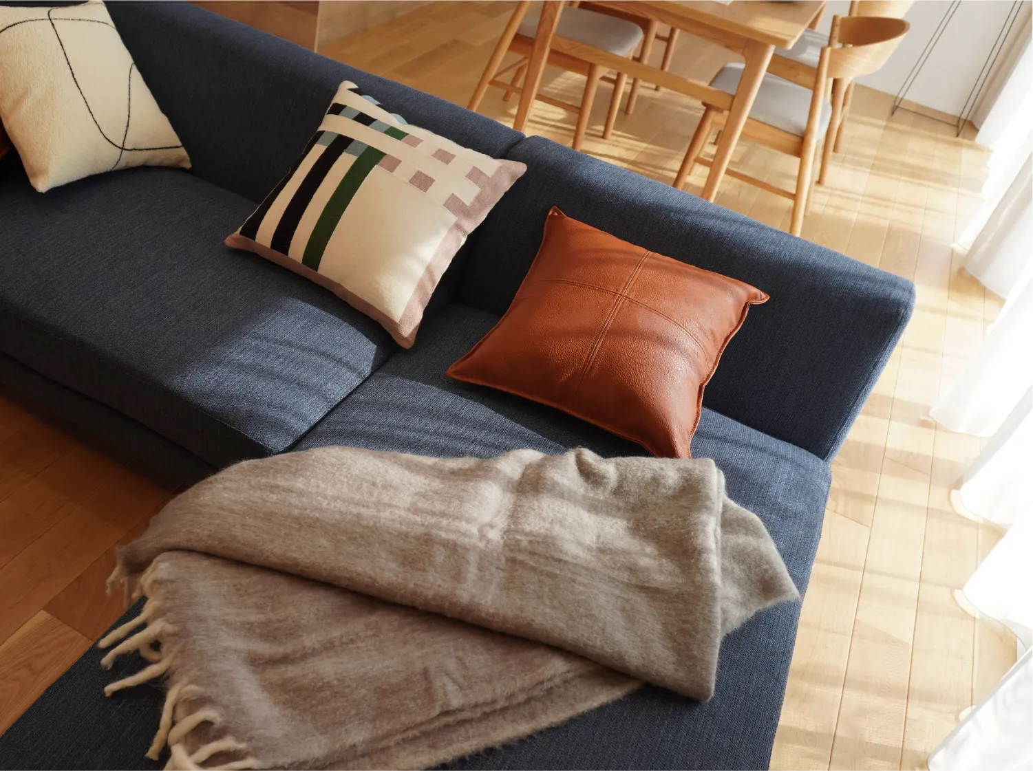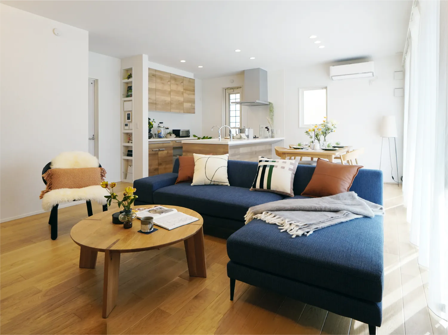 床の色は自分達なら絶対選んでなかった濃い色なんです。最初は色の主張が強くない?って思いましたが、住んだら逆にメリットでした。無難な家具を置くだけで、床がアクセントになって、ちょっとおしゃれに見える。結果、プロの選択が正解でした。