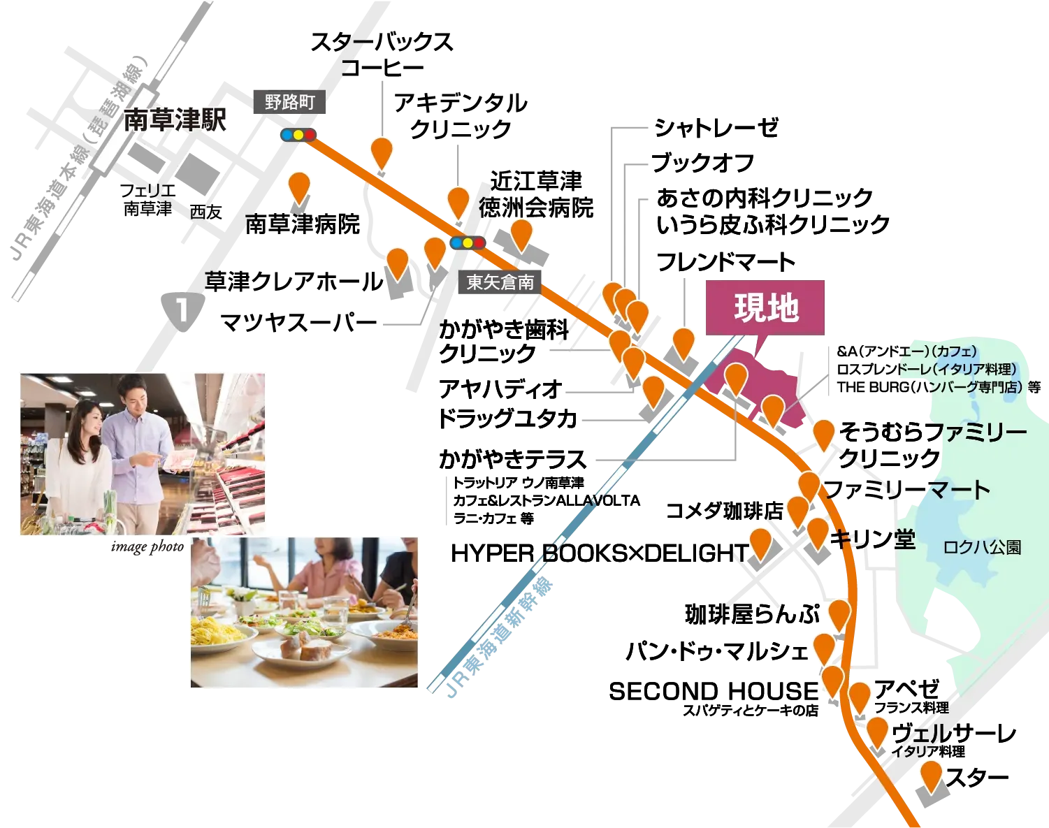 スーパー、薬局、病院、皮膚科、歯医者、整体…