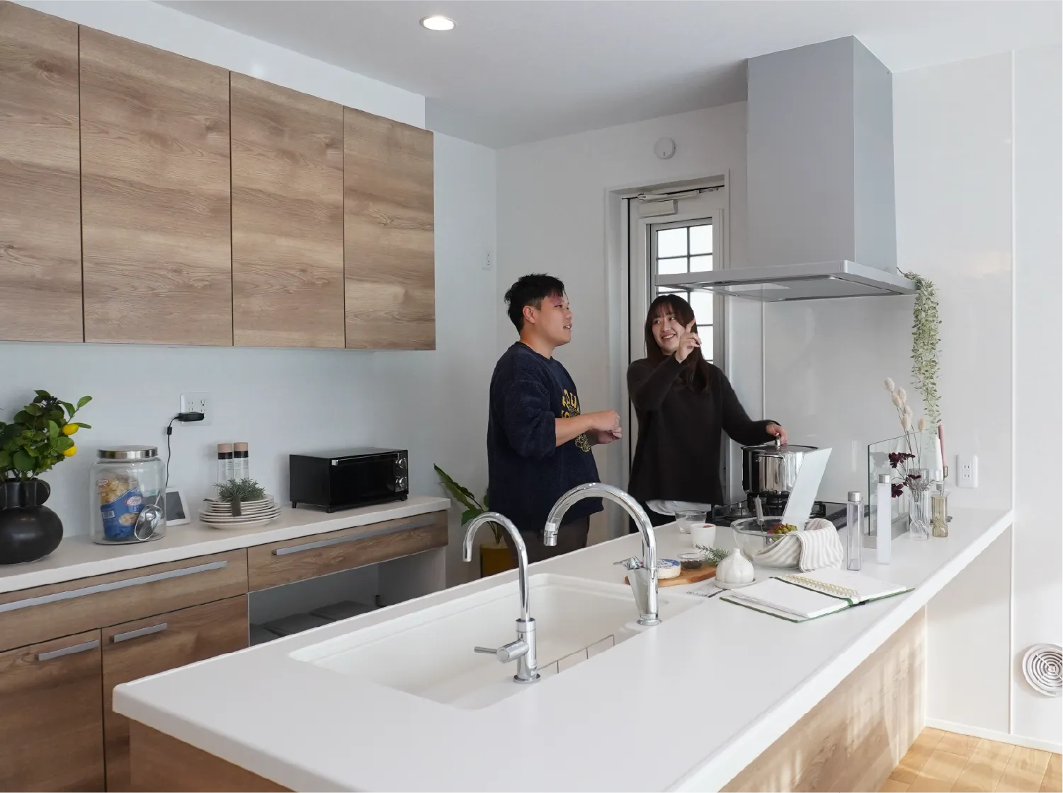 キッチンも広いし、洗面も2人で使いやすい。作り置きもしやすくて、家事の押し付け合いが減りました。
