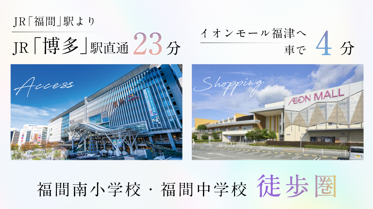 - JR「福間」駅まで徒歩13~14分(990~1,050m)