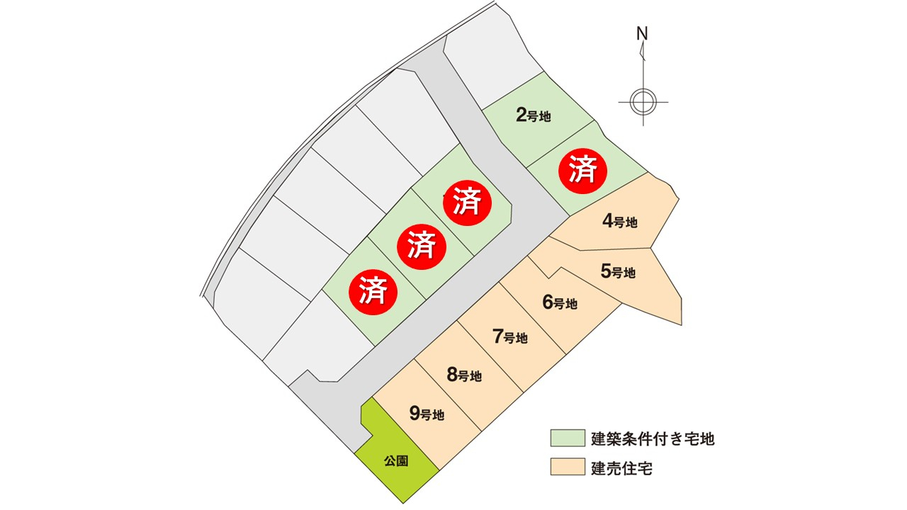 - 第一種低層住居専用地域、※8・9号地の一部は、第一種住居地域にも該当