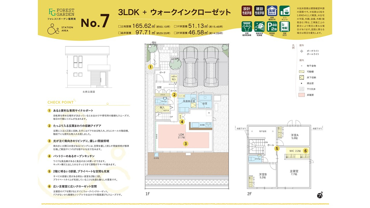 - 法22条指定区域、外壁後退1m(第一種低層住居専用地域部分)、最低敷地面積:165㎡