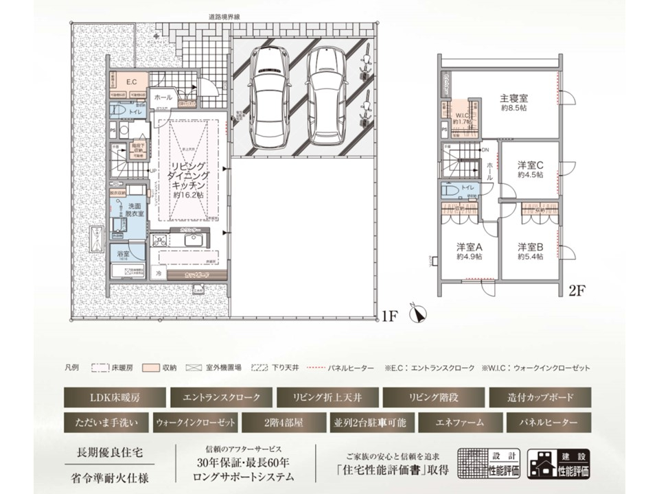「ルシアガーデン平岡」はLS(ロングサポート)30仕様(※)による長期優良住宅の認定を受けており、「維持保全計画書」に基づくメンテナンス工事を当社で実施いただいた場合、30年間保証(構造躯体と防水)します。また、最長60年のメンテナンスプログラムをご用意しています。