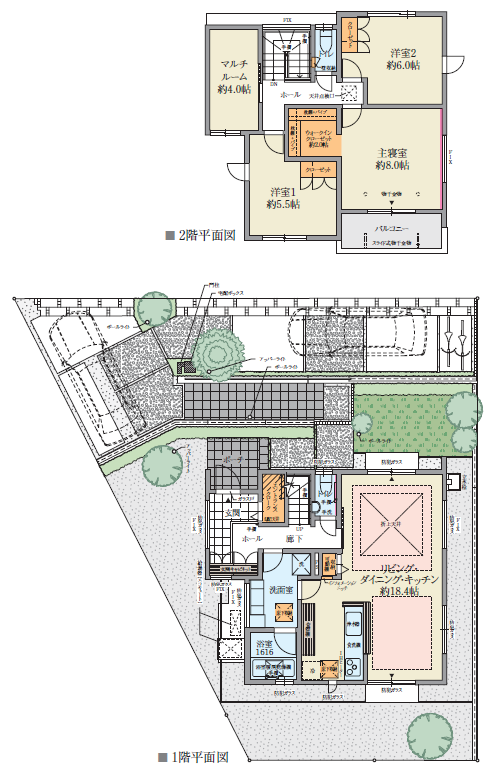 緩やかな丘陵地形に沿って高低差をうまく生かし、全体的に陽光の優しく差し込む、南東ひな壇。