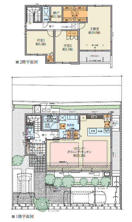 陽光あふれる南面には、広々とした芝生の庭をご用意しました。オンオフをつけた暮らしを実現します。