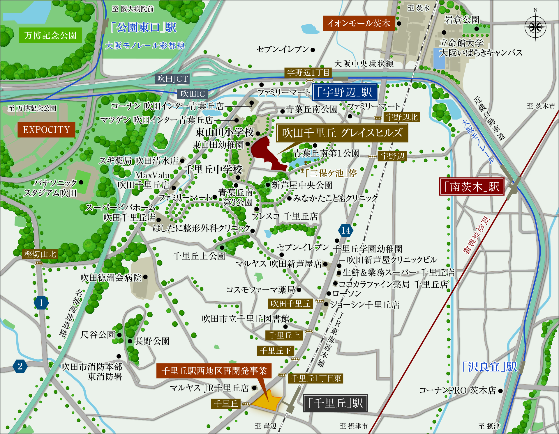 - 大阪モノレール「宇野辺」駅徒歩9分~11分、JR東海道本線「千里丘」駅徒歩22分~24分、阪急京都線「南茨木」駅徒歩22分~26分