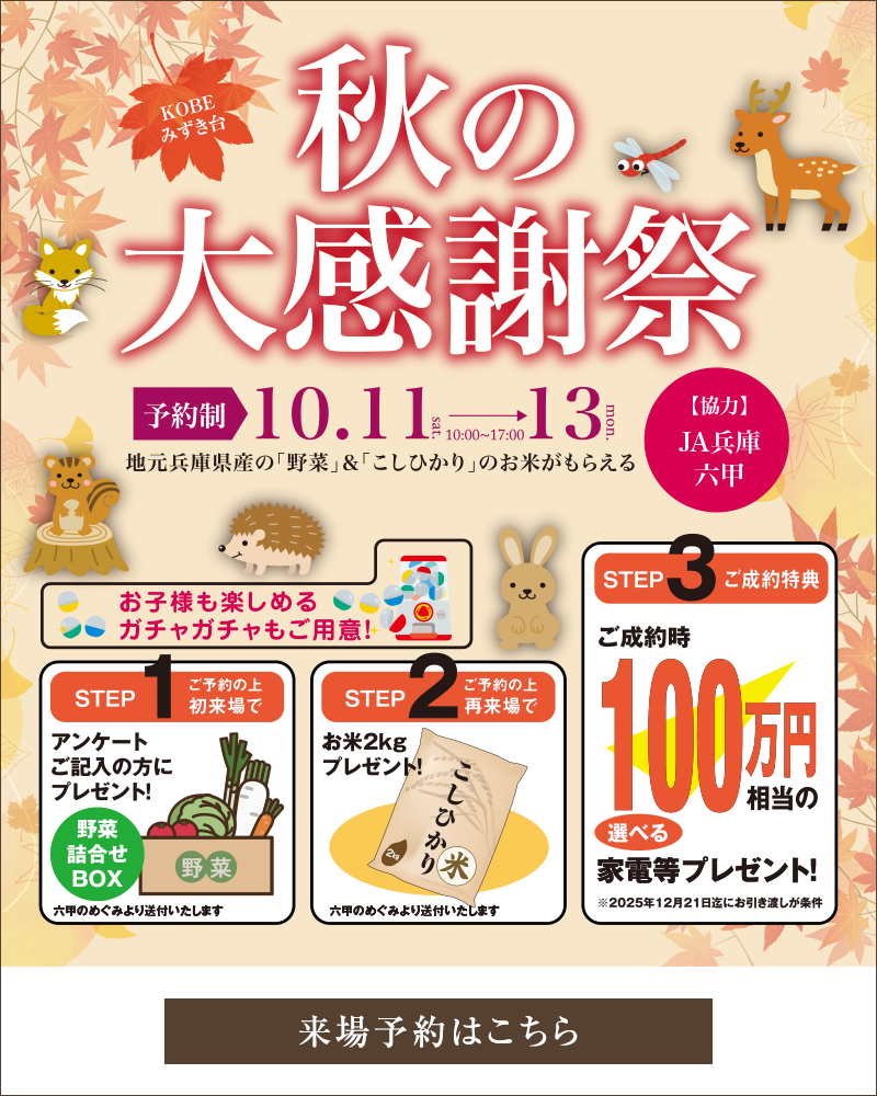 ※1 2025年9月末日までに「フォレストガーデン神戸みずき台ウインズタウン」にご契約いただき、2025年11月末日までにお引渡しいただける方に限ります。