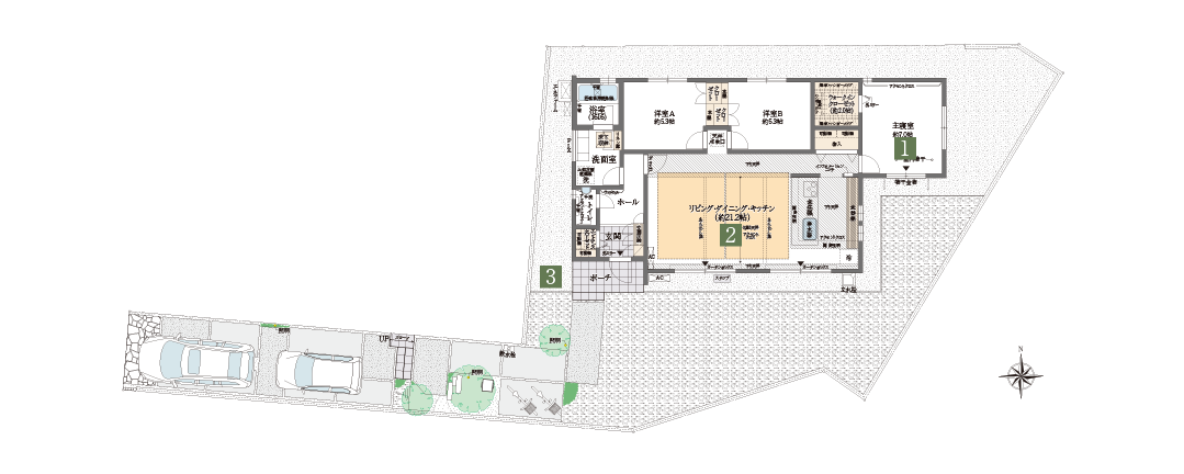 275㎡の敷地に3LDKを確保した