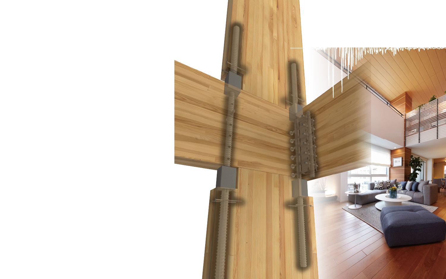ビッグフレーム構法では、構造材に埋め込まれた金属相互のメタルタッチ接合により、構造躯体を強固に一体化します。地震や強風など外からの力が加わっても、住まいの安全を守ります。