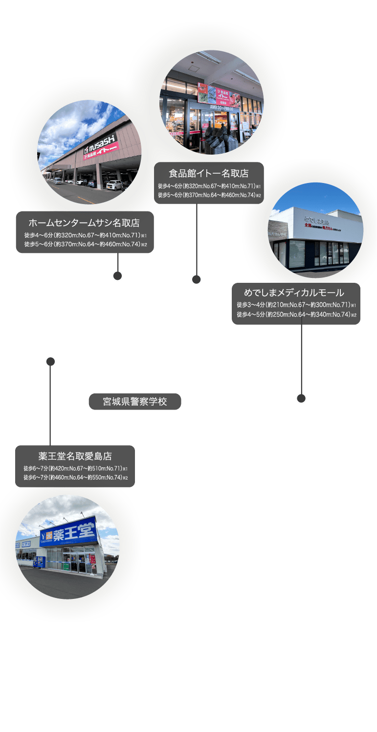 3つの視点で快適な住み心地を掲げる「名取・めでしまの郷」。
