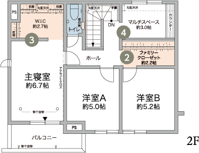 2階にマルチスペースを配置。書斎や家事スペースなど、用途に応じて活用できます。
