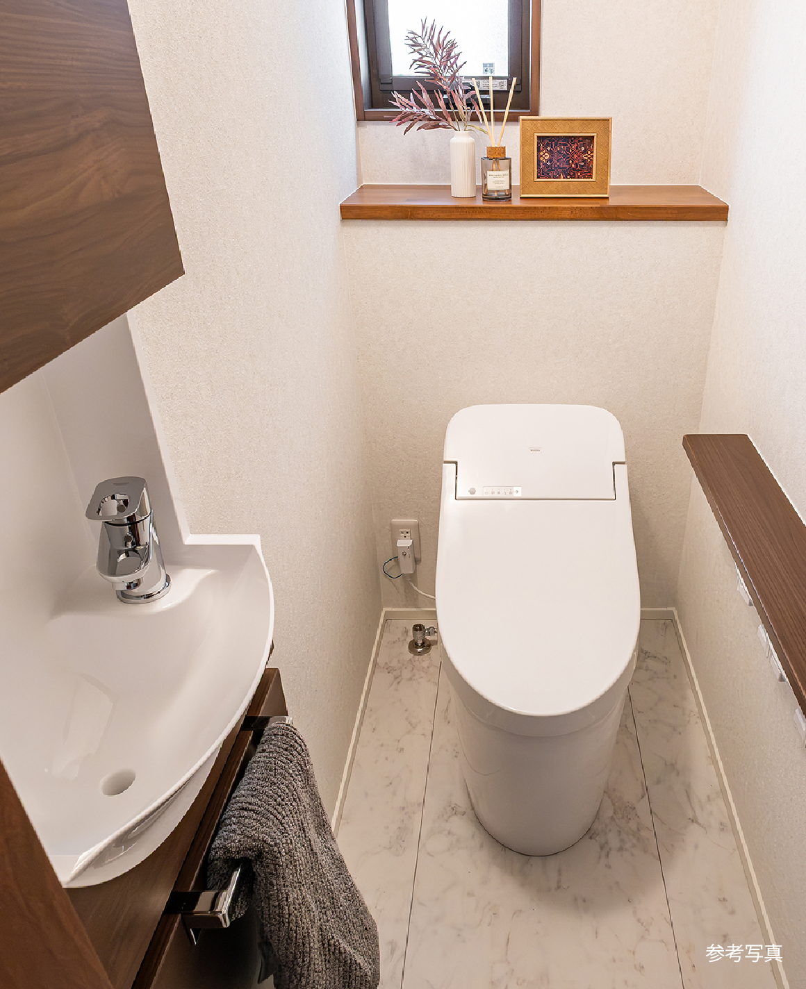 場所をとらず、きちんと手洗いができる埋め込み式手洗器を採用。トイレを機能的でスッキリした空間に演出します。