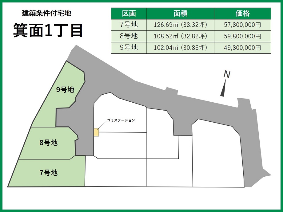建築条件付宅地 | この土地は、土地売買契約締結後3ヶ月以内に当社と建物請負契約を締結して頂く事を条件として販売します。この期間内に建物請負契約が成立しなかった場合には、土地売買契約は白紙となり、申込金その他お預りした金銭は全額(契約書に貼り付けた印紙代を除く。)無利息でお返し致します。 |