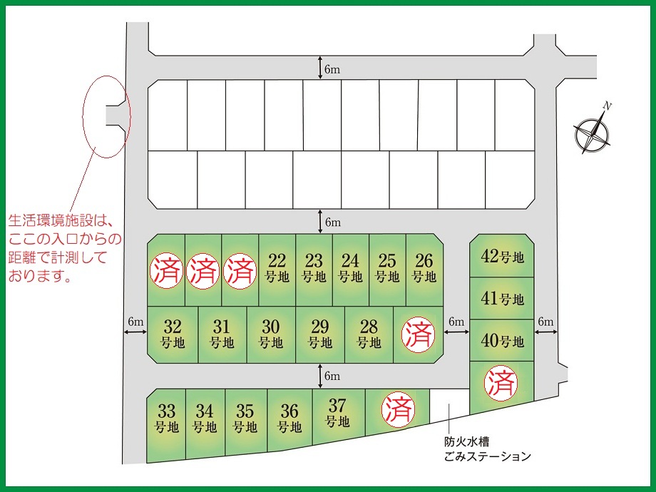 | 建築条件付宅地 | この土地は、土地売買契約締結後3ヶ月以内に当社と建物請負契約を締結して頂く事を条件として販売します。この期間内に建物請負契約が成立しなかった場合には、土地売買契約は白紙となり、申込金その他お預りした金銭は全額(契約書に貼り付けた印紙代を除く。)無利息でお返し致します。 |