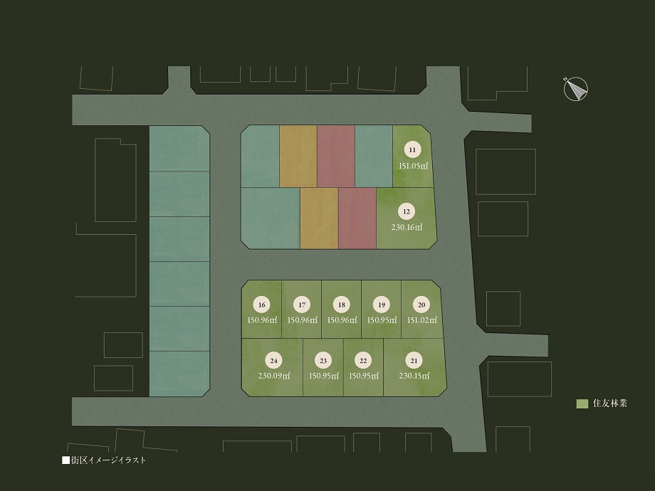 敷地面積:150.95㎡(45.66坪)~230.16㎡(69.62坪)