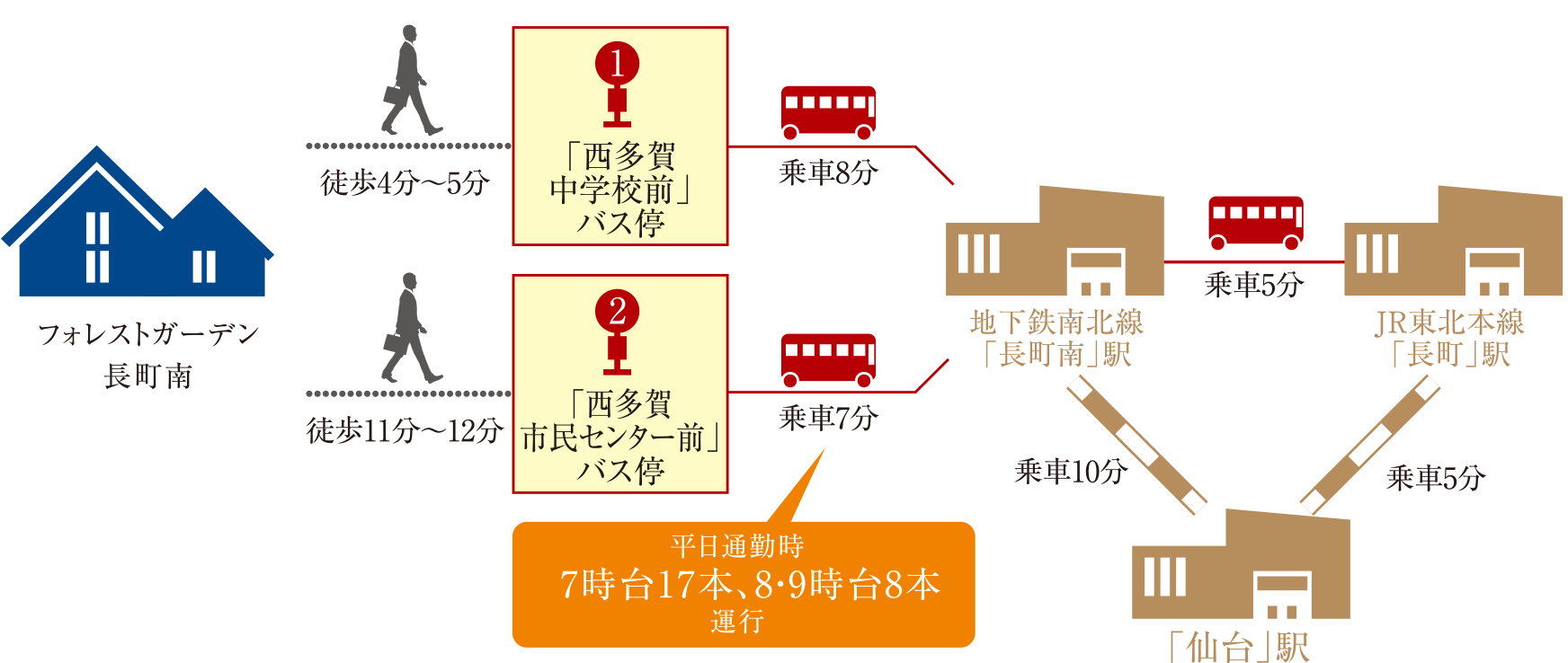 - ※電車の所要時間は通勤時間帯のもので時間帯により異なります。乗換え・待ち時間を含みます。