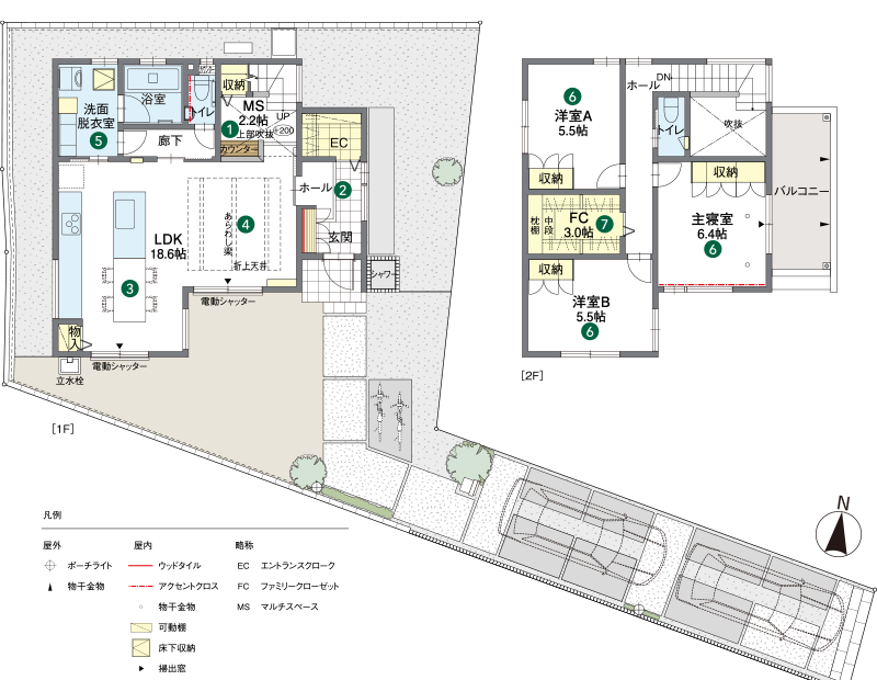 ※住宅の平面、外観、設備、外構(植栽含む)等は、工事施工上の都合により現況と異なる場合があります。図面と異なる場合は現況を優先します。