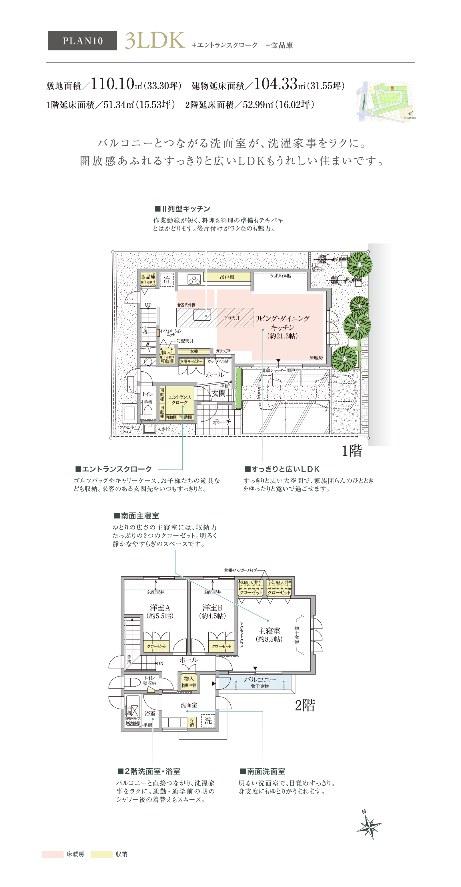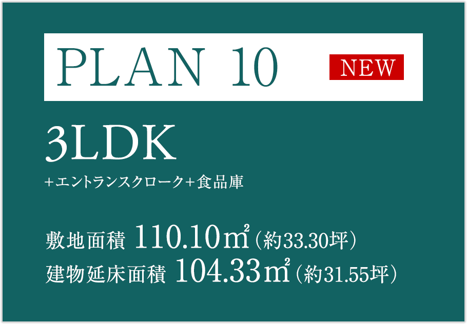 - ※建物面積は建築確認申請の面積です。※帖数は1帖を1.6562㎡として概算しております。※壁ふかし、本棚は床面積に含みます。※住宅の平面、外観、設備、外構(植栽含む)等は、工事施工上の都合により現況と異なる場合があります。図面と異なる場合は現況を優先します。※一部バルコニー面積が建物面積に含まれている棟があります。