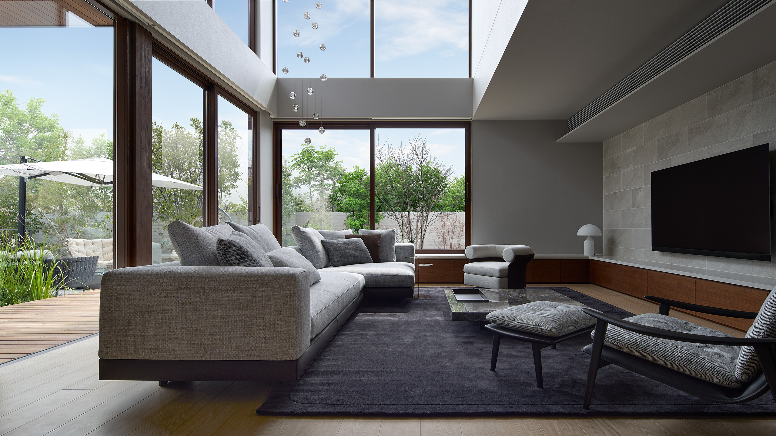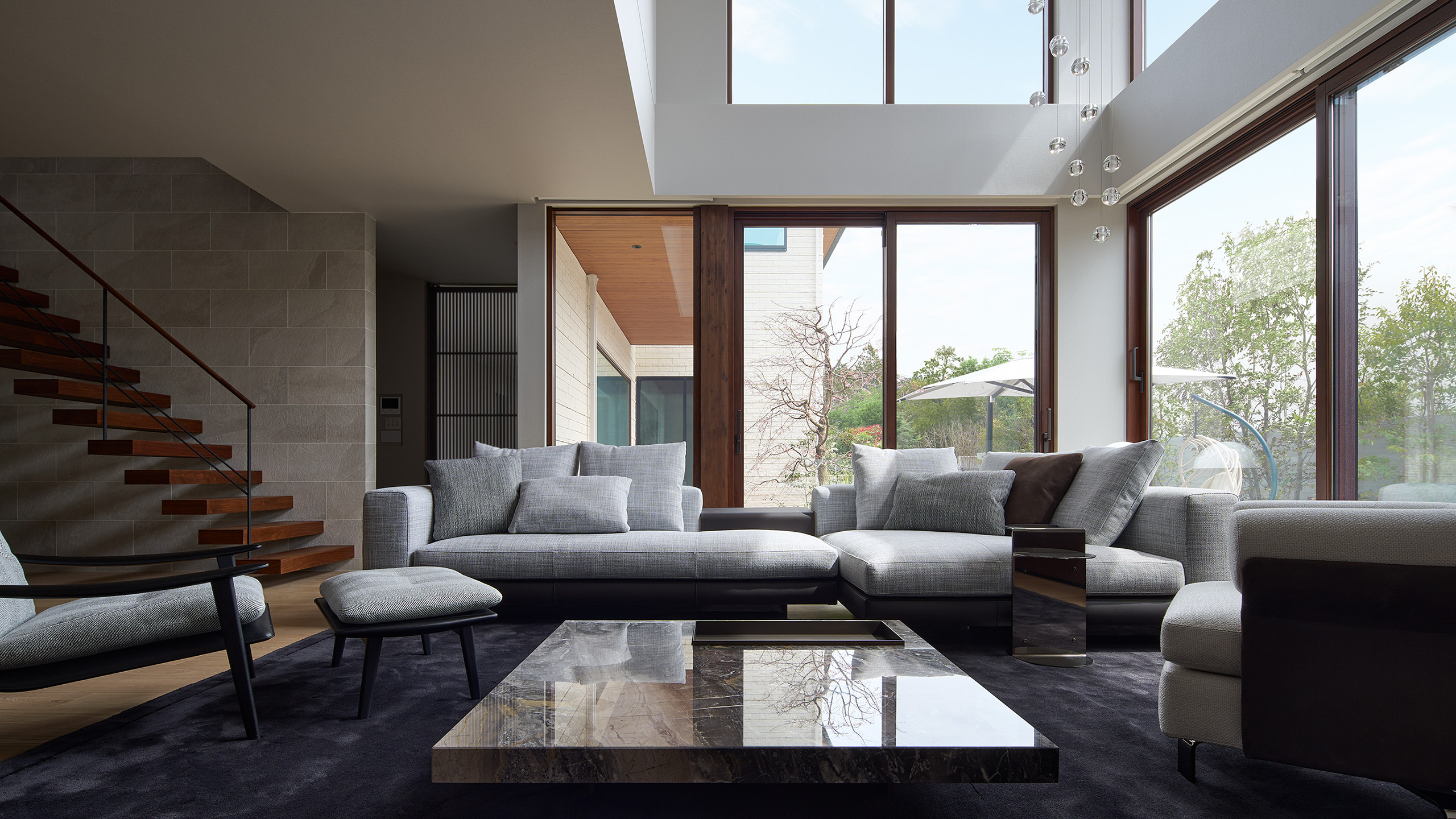 愛犬とたわむれる中庭へと繋がり、日常を心地よく広げてくれる。