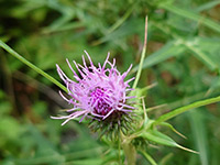 葉先の棘が強いアズマヤマアザミ(東山薊)の花