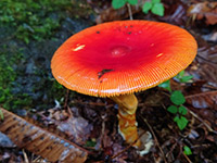 色鮮やかなタマゴタケが雨に濡れて傘がツヤツヤしています