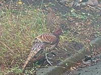 ある日、林道を車で通っていると道端に大きな鳥がいました。尾の長いヤマドリのカップルでした。百人一首の中、柿本人麻呂が「あしびきの ヤマドリの尾の しだり尾の 長々し夜を ひとりかも寝む」と詠んだあのヤマドリです。昔から長い尾が特徴と捉えられていたのですね。姿かたちは日本の国鳥であるキジに似ていますが、色合いが地味です。