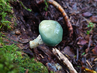 苔むした樹の幹にヒョロっと細長い先端がオレンジ色の目立つものがあります。そっと引っ張ってみて出てきたのは細い軸の先にカメムシがくっついています。冬虫夏草の仲間で、その名もカメムシタケです。今、この冬虫夏草の仲間を使って農薬を使わない害虫対策にしようという研究が進んでいるそうです。