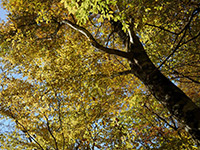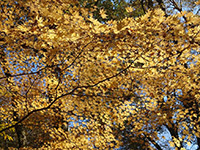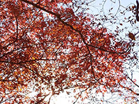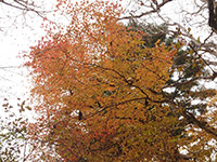 ただ、その中で鮮やかに赤く色づいている樹があります。メグスリノキです。3枚の複葉で一見分かりにくいですが、れっきとしたカエデの仲間です。名前のとおり昔から葉や小枝を煎じた液体を眼病の洗眼に使ったそうで、別名チョウジャノキ(長者の木)とも呼ばれています。現代の科学的分析でもその薬効が確認されています。
