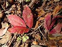 きれいな紅葉のメグスリノキの落葉 形は変わっていますが、カエデの仲間です