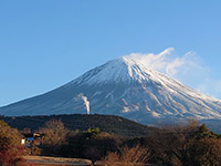 富士山の初冠雪から何度か降雪を繰り返し、ある日の朝には5合目まできれいな雪化粧となりました。山頂付近では強い風に雪が舞い上がって、雪煙が見られました。