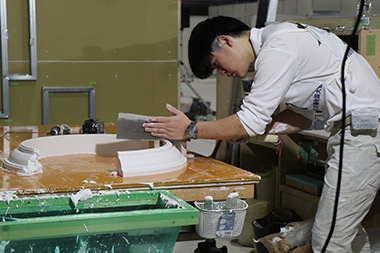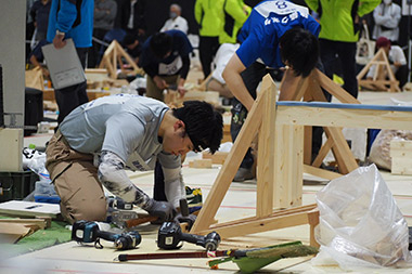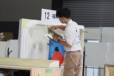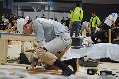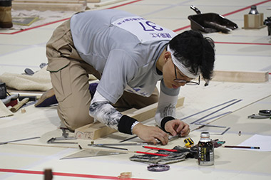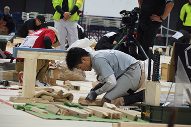 本年は10月17日から20日に愛知県国際展示場など15会場で行われ42職種、1,025名の原則23歳以下の青年技能者が都道府県を代表して競いました。建築大工職種部門は67名、左官職種部門は16名が参加し、住友林業ホームエンジニアリングからはそれぞれ7名、4名が出場しました。専門校で大工や左官としての必要な訓練を修了した技能職社員の中から選抜され、競技に向けて練習を重ねて大会に臨みました。
