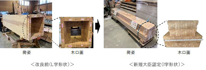 被覆パーツをL字からI字のシンプルな形状に改良し、被覆パーツの製造工程で木材加工数、部材の接着工程を削減。改良前と比較し製造コストを約20%削減しています。凹凸のあるL字に比べ現場への運搬性、建築現場での施工性も向上します。