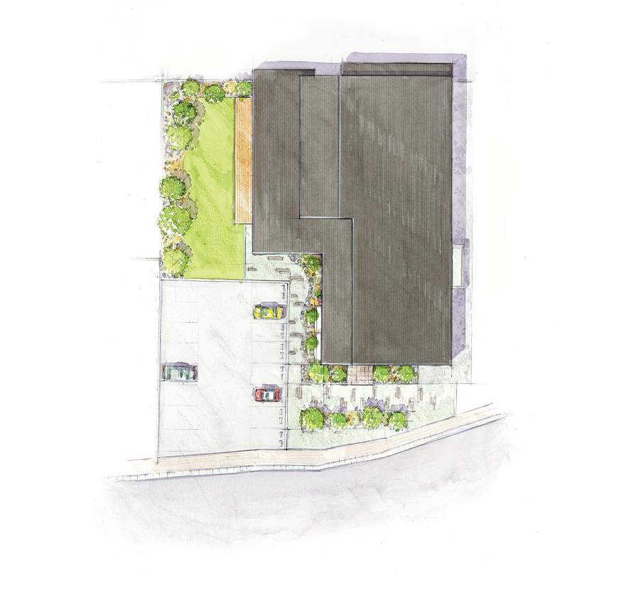 建物の奥には、約10台が駐車できる来客用の駐車スペースも備えています。