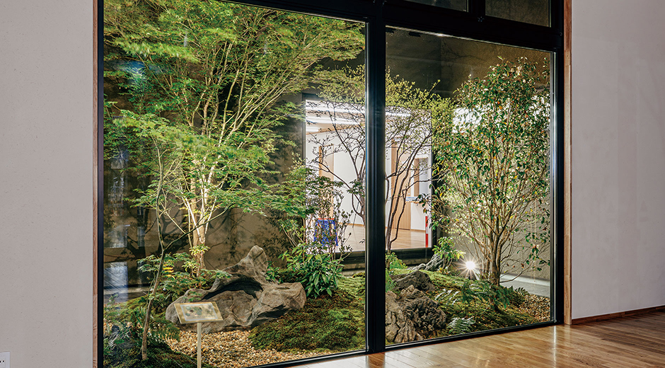 ビッグフレーム構法が可能にする大開口を活かした室内からの中庭の眺め。採光性にも優れています。